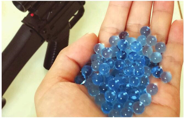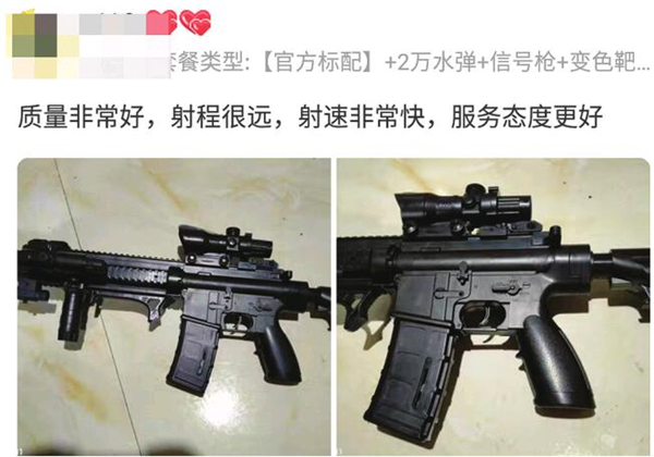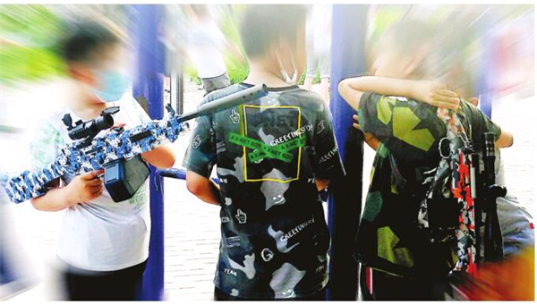 核心提示:对于玩具枪,男孩子似乎有一种天生的喜欢,尤其是商家宣传称威力十足、射程远的水弹枪,更是受到了小男孩们的青睐。