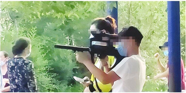 走近了,刘女士才看清楚,孩子们手上拿着的都是玩具枪。刘女士没多想,以为就是普通的放了电池、有仿真枪声的那种玩具枪,她还让孩子过去跟大家一起玩。就在她跟孩子说话时,感觉有什么东西飞过来,出于一种本能,她搂住孩子并用胳膊挡住了孩子的头。随即,一阵刺痛从刘女士胳膊上传来。再一看,已经红了。