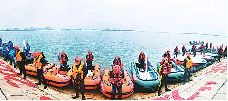 核心提示:“‘龙域-2020’抗洪抢险应急演练现在开始!”昨天上午9时,随着总指挥的一声令下,我市一场声势浩大、场面壮观的抗洪抢险应急演练,在北湖水库正式拉开帷幕,水陆空“应急救援”紧张有序展开。