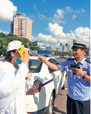 交警提醒广大交通参与者,在通过路口时,一定要遵守交通法规,按照信号灯通行,既保证自己的出行安全,又树立大庆交通安全文明形象。