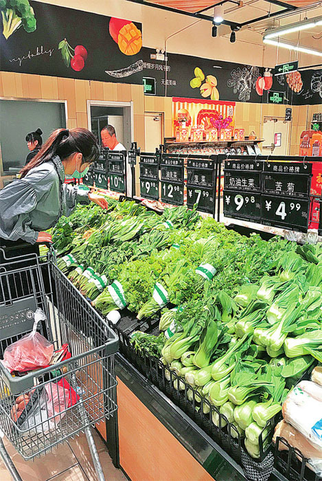 永辉超市蔬菜档口前,市民在选购蔬菜。