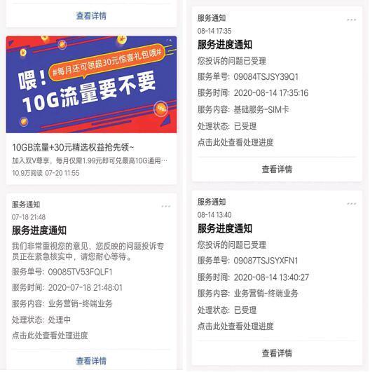张先生告诉记者,他曾多次投诉此事,最初的处理结果是可以改资费,但要把之前一年移动公司每个月返的52元钱补上。张先生不同意这个结果,又投诉到工信部门,移动公司客服来电又称,每个月再给加10G流量,或者移动公司承担一半,让张先生补52元的一半费用。