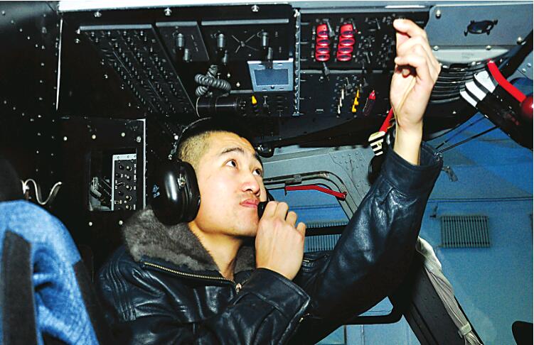 苏庆刚为直升机做通电检查。